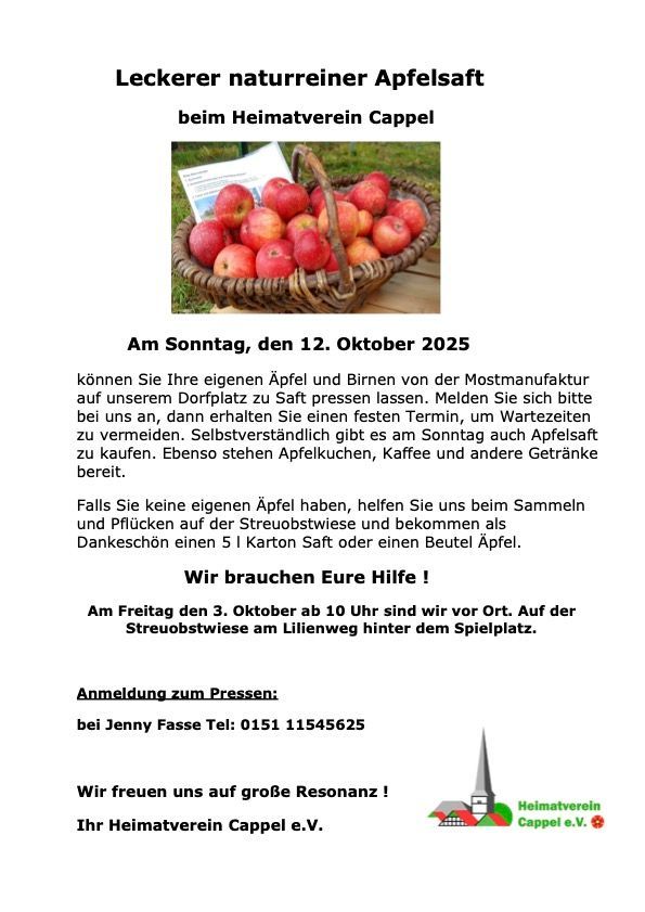 Apfelfest des Heimatvereines Cappel am 12.10.2025 ...
